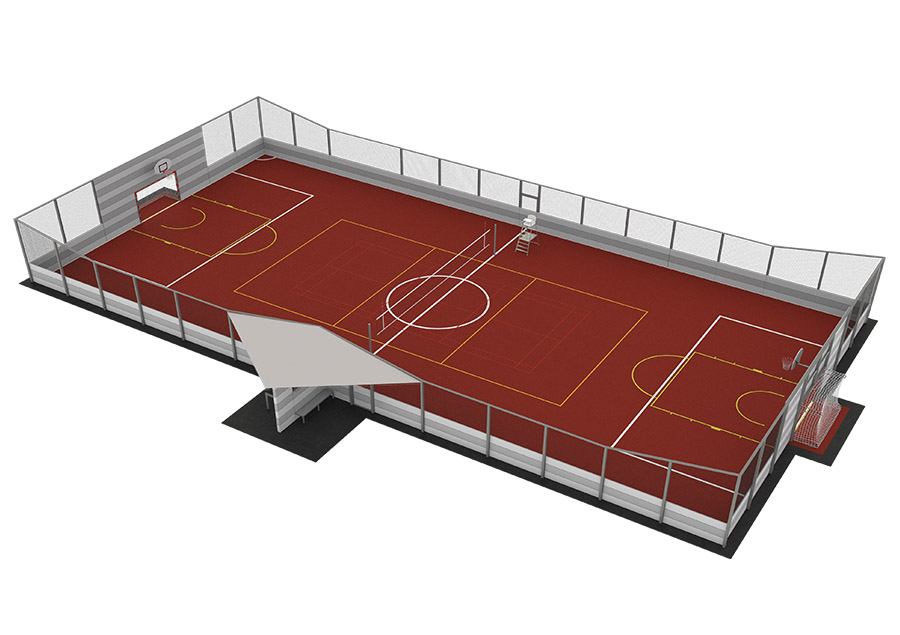 vybavení: předefinované hřiště disponuje vybavením k hraní výše uvedených sportů