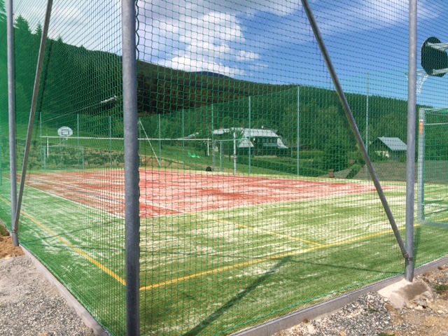 Víceúčelové hřiště o rozměru 34 x 15 m. Povrch hřiště je tvořen z umělého sportovního povrchu Fast Track 15. Oplocení bylo provedeno z PP sítě do výšky 5 metrů. Realizace zahrnovala sportovní vybavení na volejbal, tenis, branky na házenou a kopanou s vyložením na streetball. Součástí stavby bylo i zpevnění svahu pomocí geo mříže. Celková cena realizace byla 892.000,- Kč bez DPH. Doba realizace 4-5/2016.